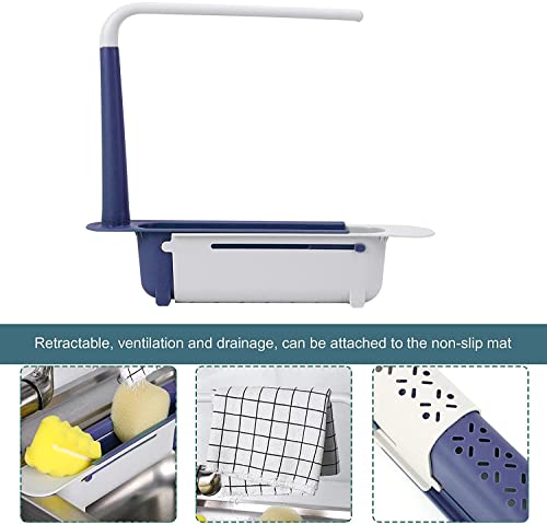 Sink Sponge Organizer Supporto per Cestello Portaoggetti Espandibile Lavello Telescopico Scaffale Multifunzione Porta Lavello Telescopico Portasapone In Spugna Scolapiatti Supporto Per Lavello (blu)