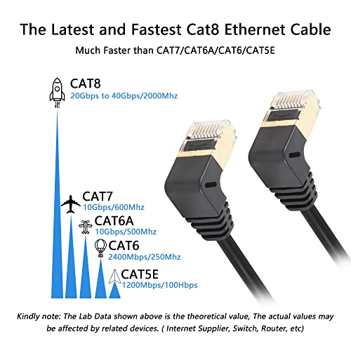 SinLoon RJ45 Cavo Ethernet Cat8, 90 Gradi Maschio a Maschio Cavo di Rete Cat8 Ad Alta Velocità, 40 Gbps 2000 Mhz SFTP Patch Cord per Router Modem Server (UP to UP)