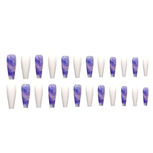 SINLOV 24 pz Coffin Unghie Finte Glossy Gradient Press on False Nails Lunghe Ballerina Unghie Finte Artificiali Copertura Completa Unghie Finte per Donne e Ragazze (Viola)...