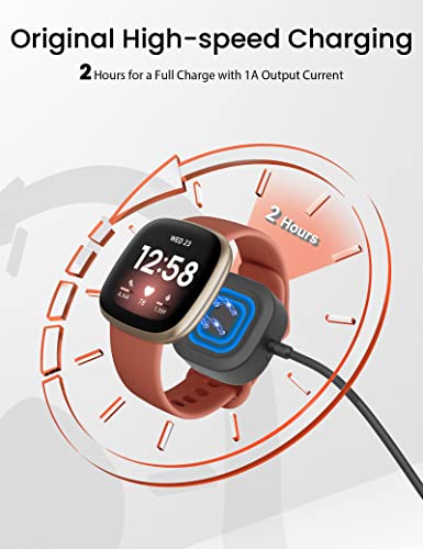 Velocità di ricarica rapida: progettato per caricare il tuo smartwatch Fitbit Sense 2, Sense, Versa 4, Versa 3 alla stessa velocità di un cavo di ricarica originale Fitbit Sense. Non preoccuparti, questo cavo di ricarica di ricambio spreca tempo prezioso.