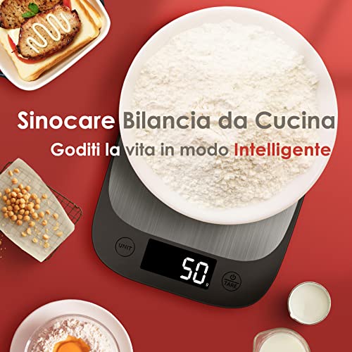 Sinocare Bilancia da Cucina, Bilancia per Alimenti con Calcolatore Nutrizionale, 5 Unità di Pesatura Accurate e Funzione di Spegnimento Automatico, Bilancia per Alimenti in Acciaio Inossidabile