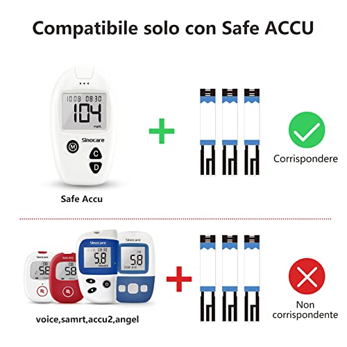 Sinocare Strisce Glicemia, 50 x Striscette per Glicemia, Strisce Reagente Glucosio solo per (Safe Accu)