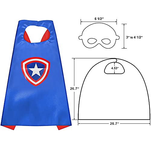 Mantella per supereroi dei cartoni animati: dimensioni del raso 70 x 70 cm, dimensioni della maschera 15 x 7 cm. Può essere facilmente regolabile per adattarsi a ragazzi e ragazze dai 2 ai 18 anni. Un grande regalo per tutte le occasioni come feste di compleanno, feste in costume e Halloween, Natale, Capodanno.