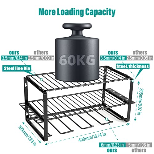【Forte capacità portante】 I nostri prodotti sono realizzati in acciaio speciale per impieghi gravosi e le sezioni multiple sono circa 1 mm più spesse rispetto ai prodotti della concorrenza. Con una maggiore capacità di carico e durata, è inoltre dotato di viti di espansione esagonali per garantire una maggiore capacità di carico, quindi non dovrai più preoccuparti che il ripiano si rompa o cada dal muro.
