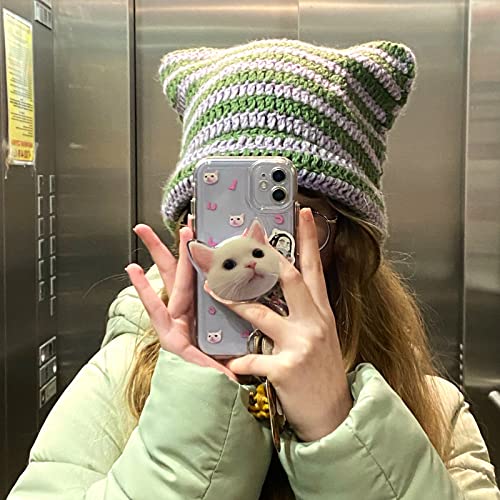 Design: questo cappello all'uncinetto per gatti è comodo, caldo e traspirante, può rimanere saldamente nella tua testa. Stile orecchio gatto, aspetto così adorabile e carino, pieno di sensazione artistica, bellissimo accessorio estetico, ma può anche tenerti al caldo in inverno freddo, facile da catturare gli occhi tra la folla.