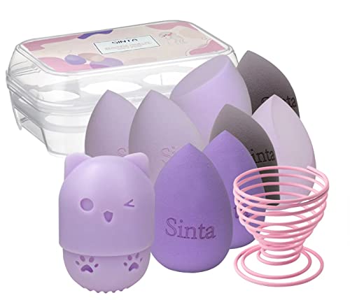 Sinta 10 Pcs Set di Spugnette Trucco Beauty Spugna per il Trucco Fondotinta Spugnetta,Ottimo per Liquidi,Crema Cosmetica Blender Spugne di Trucco,Custodia in Porta Spugna per il Trucco,Viola