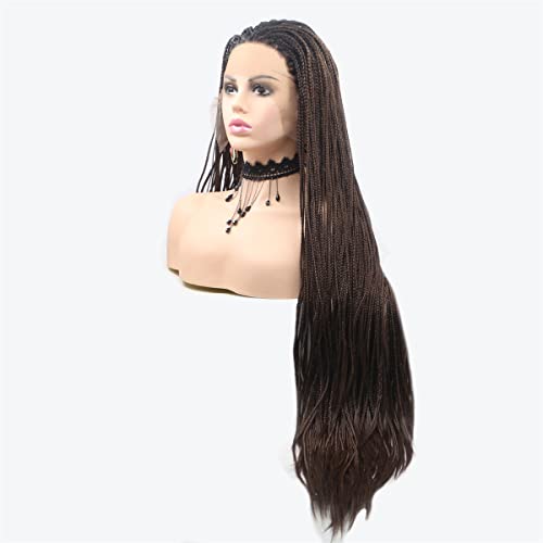 Sintetiche Anteriori in Pizzo Parrucche Acconciatura A Strati Intrecciati 150% Seta Sintetica Parrucca Marrone Scuro Da Donna Parrucca Marrone Anteriore Da Donna in Pizzo Di Media Lunghezza,28 inches