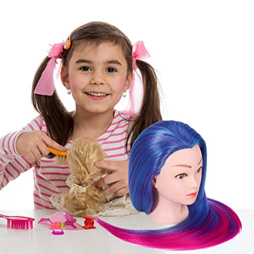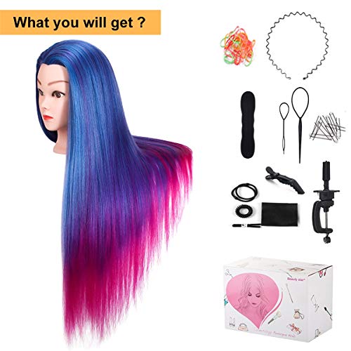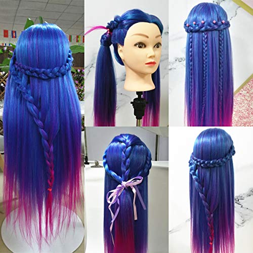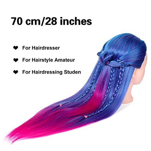 28" 100% Sintetici Colorati Testina Parrucchiere TwoWin Manichino Cosmetologia Formazione Pratica Modello con Morsetto & DIY Accessori per Capelli (rosa viola)...
