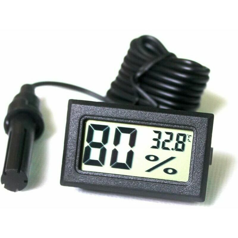Questo termometro e igrometro digitale LCD ha una sonda da 1,5 m che misura la temperatura e l'umidità in luoghi specifici. È ampiamente utilizzato in acquari, pollame, rettili, incubatrici, serre, ecc. . Descrizioni: Intervallo di misurazione della temperatura: -50°C ~ 70°C Misurazione dell'umidità: 10% RH ~ 99% RH Precisione della temperatura: +1 / -1°C Risoluzione del display della temperatura: 0,1°C Tensione di esercizio: 1,5V AG13/ Batterie LR44 Periodo di campionamento: 10 s Dimensioni: circa 48 mm*28,6 mm*15,2 mm Dimensioni LCD: circa 35,7 mm*16,8 mm Colore: nero. Colore Voltaggio di lavoro: 1,5 V Alimentazione: 2 batterie a bottone LR44 (non incluse) Questo termometro e igrometro digitale LCD ha una sonda da 1,5 m che può essere utilizzata per misurare la temperatura e l'umidità di luoghi specifici. È ampiamente utilizzato in acquari, pollame, rettili, incubatrici, serre, ecc. La confezione include: 1 termometro igrometro digitale