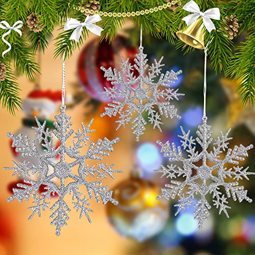 Sinwind 24 PCS Fiocchi di Neve Decorazione, Fiocchi Neve Natale, Glitter Fiocco di Neve, Fiocco di Neve Plastica Glitter Ornamenti, Fiocchi di Neve Decorativi di Natale (Dargento)