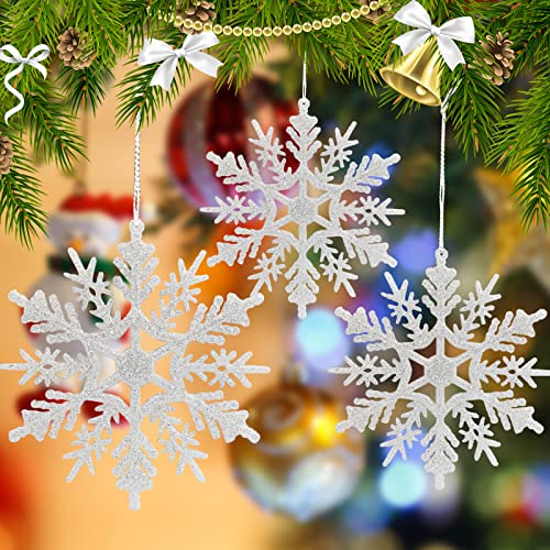 Sinwind 24 PCS Fiocchi di Neve Decorazione, Fiocchi Neve Natale, Glitter Fiocco di Neve, Fiocco di Neve Plastica Glitter Ornamenti, Fiocchi di Neve Decorativi di Natale (Bianco colorato)