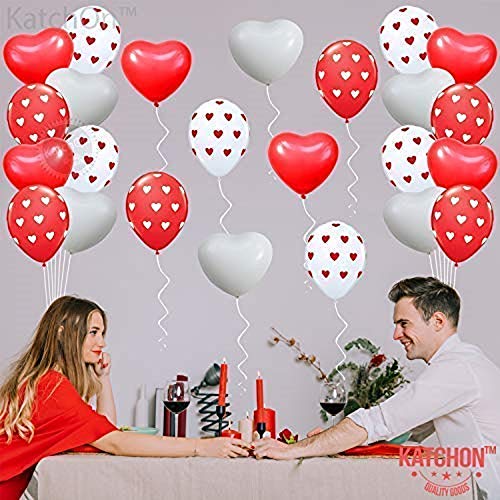 ♥ 100 pezzi palloncini cuore rosso bianco elio 30 cm / 12 pollici, rosso 50 pezzi e bianco 50 pezzi.