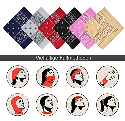 Sinzau Paisley Bandana 6 pezzi, Colorate Uomo Donna Sciarpa Anacardi Stampa Testa Avvolgente, 55 × 55 cm Fazzoletto da Taschino