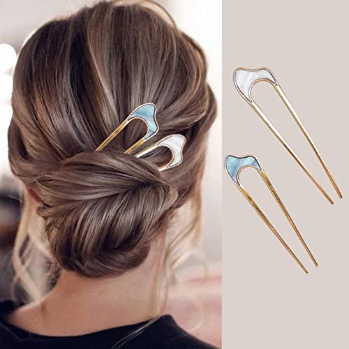 SIOPPKI 4 Pezzi Forcina a Forma di u Forcina in Stile Francese Fermaglio per Capelli con Forcina in Metallo Bacchette a Forcella Punte Perni di Chignon Updo per Donne Ragazze