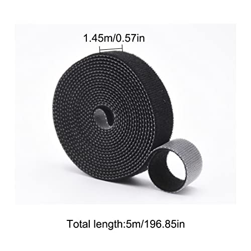 SIOPPKIK 5 m × 14.5 mm Fascette Riutilizzabili, Fai-da-te Lunghezza Fascette Cavi Regolabili, 1 Rotolo Fascette per Cavi per Gestione Cavi, Liberi di Tagliare Fascette Nylon per Casa e Ufficio,Nere