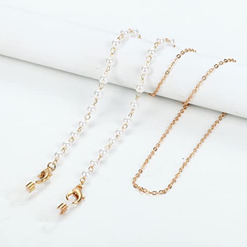 SIOPPKIK 2 pezzi catena per occhiali in oro con catena per occhiali da donna in acrilico per occhiali da sole con cinturino per occhiali da lettura con anelli in silicone antiscivolo