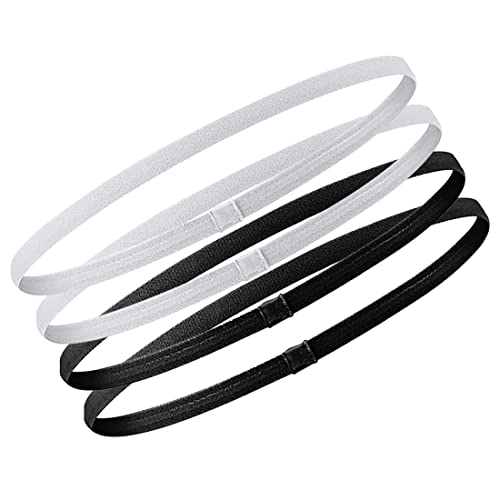 SIOPPKIK 4 pezzi, fascia sportiva antiscivolo, fascia elastica maschile e femminile, adatta per jogging, yoga, basket, tennis, calcio (2*nero, 2*bianco)