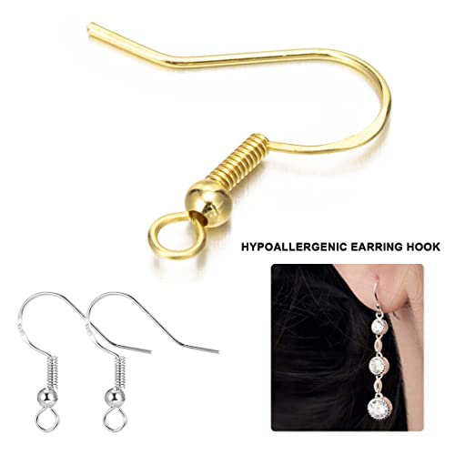 ✅【Contenuto della confezione】: riceverai 50 ganci per orecchini placcati argento, 50 ganci per orecchini d'oro, 100 pezzi di schienali di sicurezza per orecchini trasparenti. Puoi fai da te 50 paia di orecchini ipoallergenici da loro.