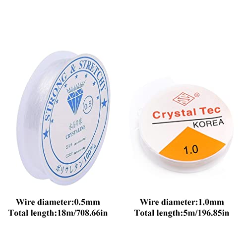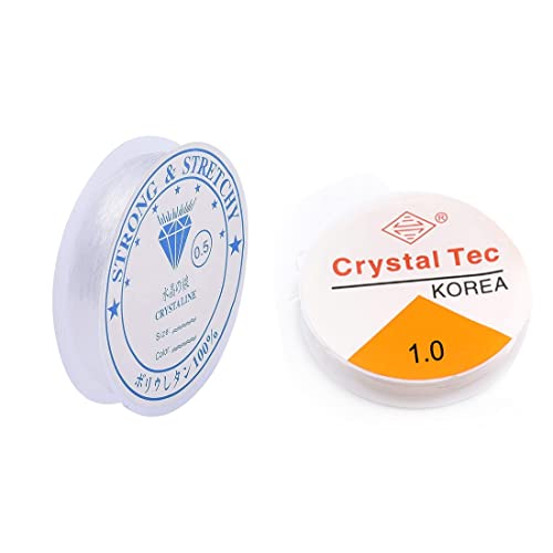 SIOPPKIK 2 pezzi 18 metri 0,5 mm, 5metri 1mm perline di gioielli in filo di fibra estensibile, filo per la fabbricazione di gioielli per braccialetti e artigianato, trasparenti, 2 pezzi.