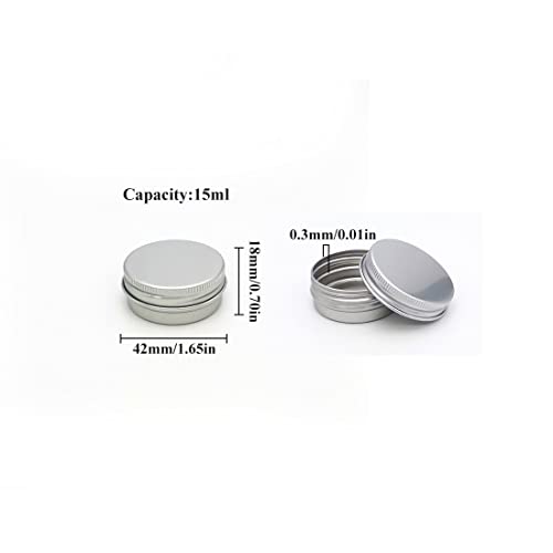 SIOPPKIK 4 Pezzi Vasetti Alluminio, Barattoli Metallo Vasetto Vuoto Contenitori Cosmetici con copri di Vite e etichette e Mini Spatola per Crema Campione Cosmetici Balsamo Labbra - 15ml