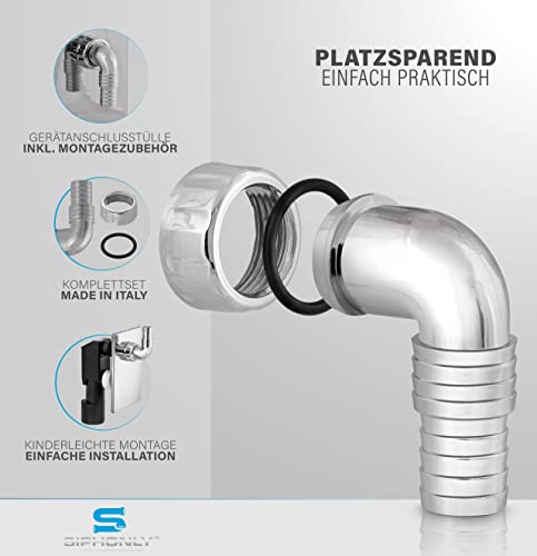 Siphonly Nipplo di collegamento per sifone da incasso - Bocchetta di collegamento 90° per lavatrice- per sifone da incasso a parete senza apertura di pulizia - Connettore tubo da 19 - 23 mm