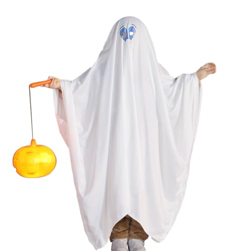 Sipiris Halloween Costume Fantasma Bambini Horror Halloween Capo Per Poncho Costume Fantasma Bianco Per Ragazzi Ragazze Cosplay Dolcetto o Scherzetto Party (90cm-110cm)