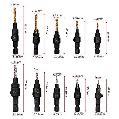 【Altissima qualità e alta qualità】- Sono realizzati in acciaio ad alta velocità, la superficie è placcata in titanio, i fori svasati svolgono il loro ruolo e non lasceranno segni negativi sui materiali o sugli strumenti.