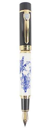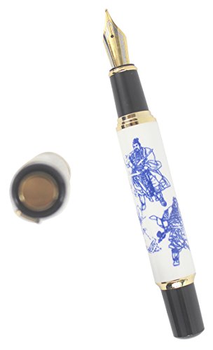 Sipliv grande penna stilografica pesante, clip oro, punta media, ceramiche reali, tre regni