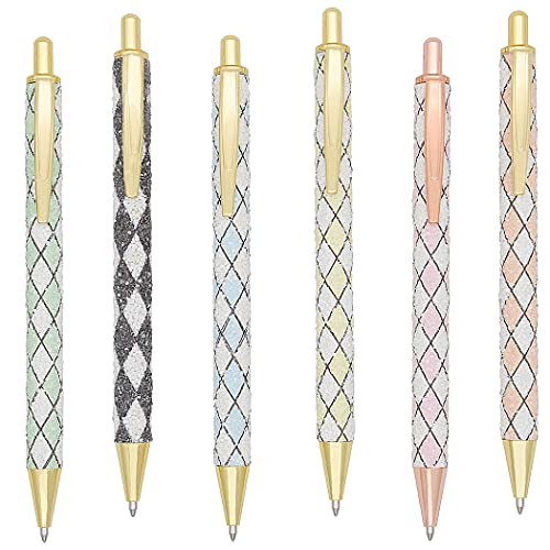 SIPLIV 6 penne a sfera in metallo glitterate Bling Rhombus Lattice penne a sfera, penna retrattile inchiostro nero forniture per ufficio per donne ragazze - multicolore