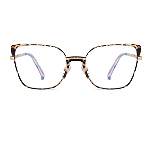 Siqiwl Occhiali da Lettura, Occhiali Oversize di Moda, Occhiali Anti-Luce Blu, Occhiali in Metallo Gatto Occhio Decorativo for Donna (Color: Leopard, Size: +2.5)