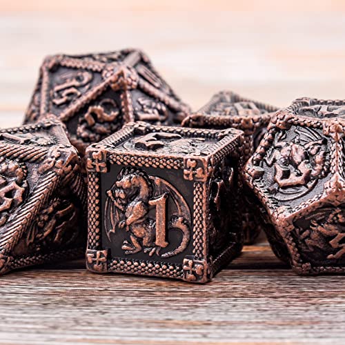 SIQUK 7 Pezzi Dadi Metallo D&D Dadi Poliedrici D20 D12 D10 D% D8 D6 D4 Set Dadi in Metallo per Dungeon and Dragons, Rame Antico