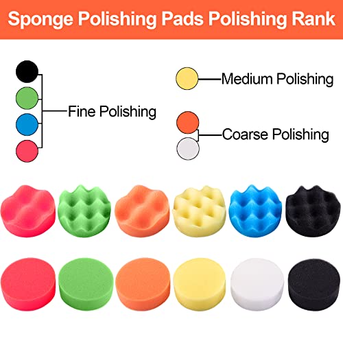 Pratico set di lucidatura - spugne di colore diverso con morbidezza diversa per soddisfare le vostre diverse esigenze di lucidatura, questi tamponi di lucidatura sono adatti per lucidare aree ruvide e piccole, possono essere utilizzati in macchine lucidatrici pneumatiche o elettriche;