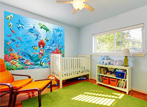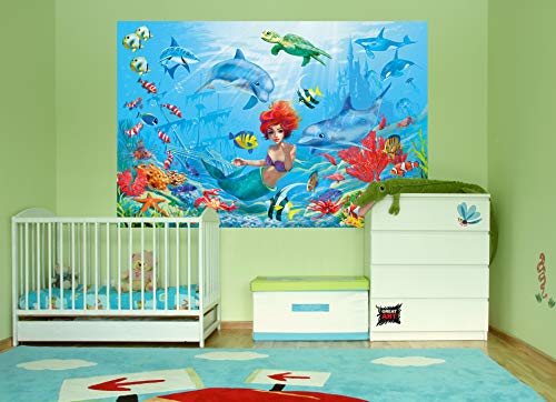 Sirena Sott'Acqua Fotomurale - Mondo Sott'Acqua Pesci Delfini Quadro Da Parete -XXL Mondo Del Mare Decorazione Da Parete -Cameretta Dei Bambini Bambina By GREAT ART (140 x 100 centimeters)