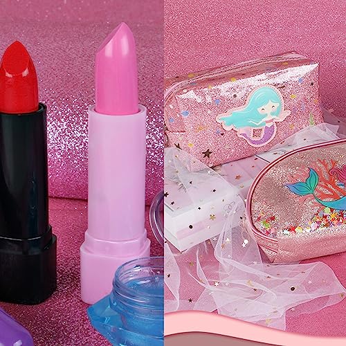 Sirena Set Trucco Lavabile per Bambini con Valigetta, Lavabile Makeup Realistico per Bambini con Valigia Cosmetica Giochi Regalo Bimba, Trucchi Bambina Set,