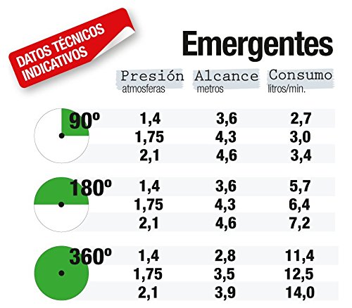 Dati tecnici indicativi: 1,4 atmosfere: 3,6 metri: 5,7 litri/minuto/1,75 atm: 3,80 m: 2,1/6,4 l atm: 4,6 m: 7,2 l