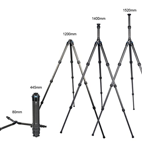SIRUI AM-284+SL-200 Treppiede grande in fibra di carbonio con colonna centrale, treppiede portatile leggero da viaggio per fotocamere, massimo 152 cm, retratto 445 mm, carico utile 15 kg.