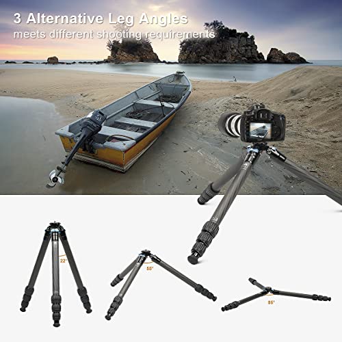 【Compatto e portatile】Grazie alla fibra di carbonio ad alta resistenza e alla tecnologia professionale, il treppiede AM-284 ha una grande stabilità - capacità di carico di 15 kg. Inoltre, è incluso un gancio per appendere il peso aggiuntivo per aumentare la stabilità quando si riprende in condizioni di vento. Il treppiede si ripiega in dimensioni compatte e viene fornito con una custodia per il trasporto. Ideale per i fotografi di viaggio