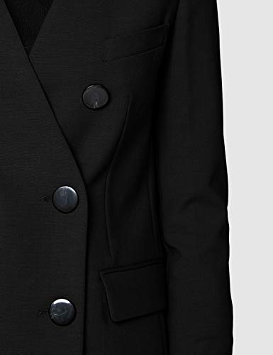 Giacca a doppio petto Longline senza colletto, in poliestere resistente, con dettagli nascosti.