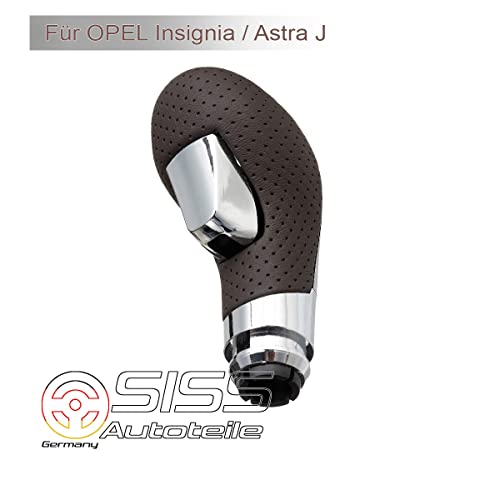 SISS Testa del pomello del cambio automatico per Insignia, Astra J, Meriva B, Zafira C, Pomello del cambio in pelle PU con leva cromata marrone (pelle liscia perforata)