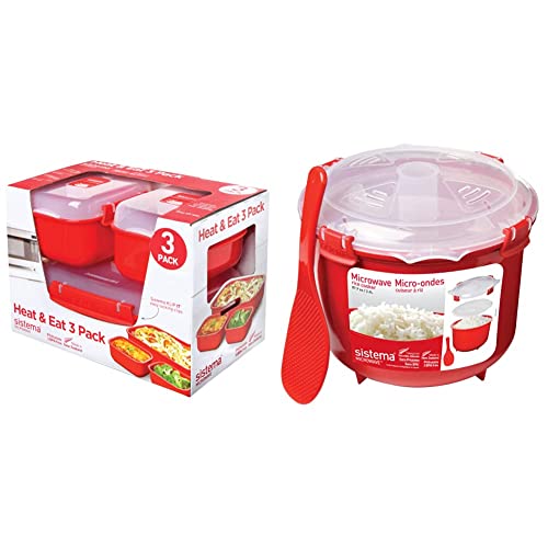 Sistema 2703 Confezione 3 Contenitori Polipropilene Microwave, Rosso & Rice Cooker, Plastic, Rosso, 2,6L