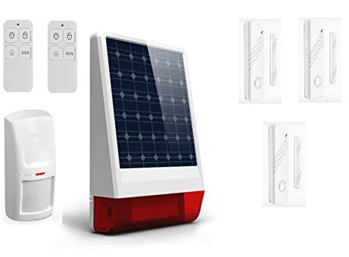 Sistema di allarme domestico Sirena solare per esterni con 1 sensore di movimento,3 sensori per porte finestre,2 telecomandi