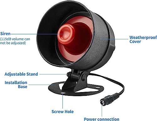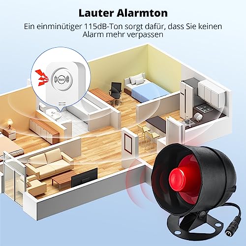 【Potente allarme sonoro】 Un potente corno con una sirena a 115 dB vi consente di essere tempestivamente avvisati dell'attivazione del sensore, anche in un'area leggermente distante. Le sirene a corno hanno un raggio wireless di circa 100 m in un ambiente aperto, adatte per centri commerciali, magazzini e casa.