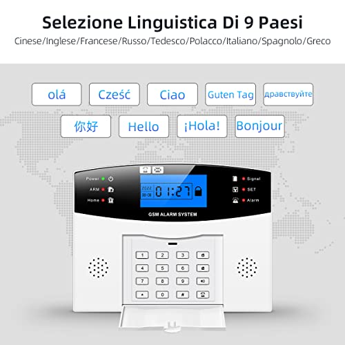 Inserisci una scheda SIM GSM (questo allarme non include la scheda SIM GSM) per chiamare/inviare un messaggio di avviso, puoi scegliere uno dei due modi o utilizzarli tutti. L'intero sistema completo di unità principale completamente programmabile e sensori wireless. Prima dell'uso, si prega di leggere il manuale dell'utente.