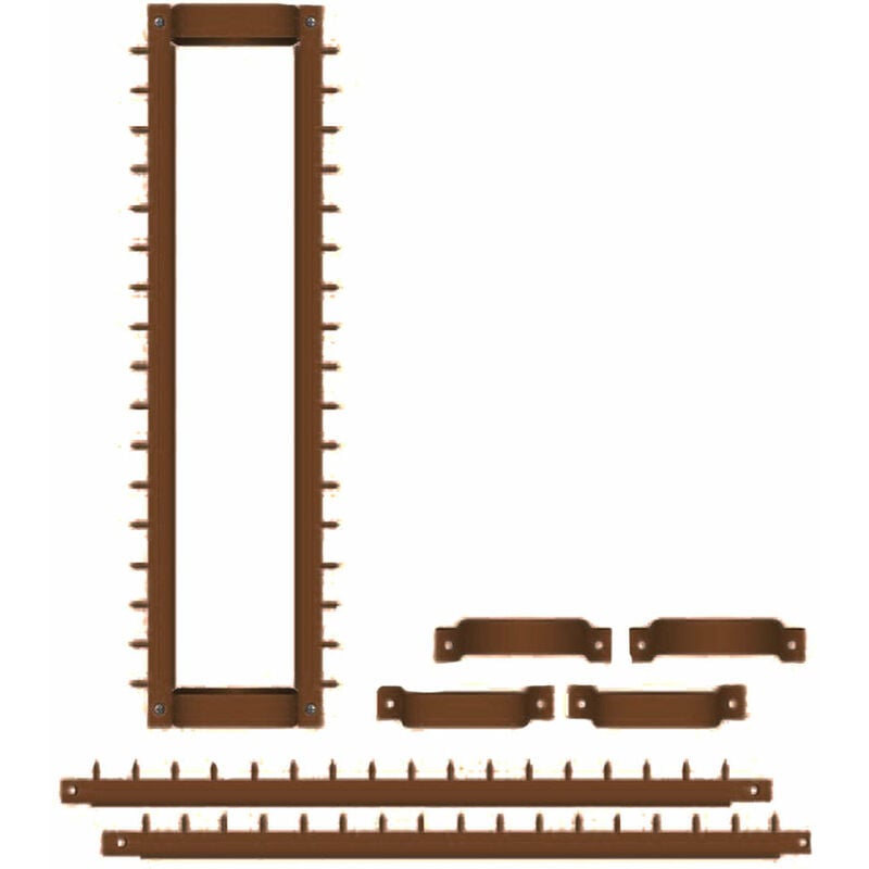 Sistema Antiladro Sistema Antiladro con Punte in Acciaio per Pluviali Quadrati Tubi Esterni 120x120 mm Marrone Sistema con due livelli di protezione, il primo livello di protezione è dato dalle barre antintrusione verticali dotate di puntali in acciaio, che non permettono di afferrare con le mani la tubatura, il secondo livello di protezione, e dato sempre dalle barre verticali, che non agevolano l'appoggio delle ginocchia alla tubatura, non permettendo così la cosiddetta ripresa di salita, impedendone così la salita verso finestre o balconi. Sia i collari in piatto 30X3, che le Barre verticali antintrusione H.740 mm sono realizzati interamente in alluminio, che uniti alla verniciatura epossidica, li rendono praticamente eterni e privi di manutenzione. Si installa al tubo o al pluviale mediante i collari (nr.4), viti e dadi in dotazione, rendendo la posa in opera semplicissima, evitando fori a muro o al pluviale che potrebbero causare infiltrazioni. Inoltre, in caso di posa in opera