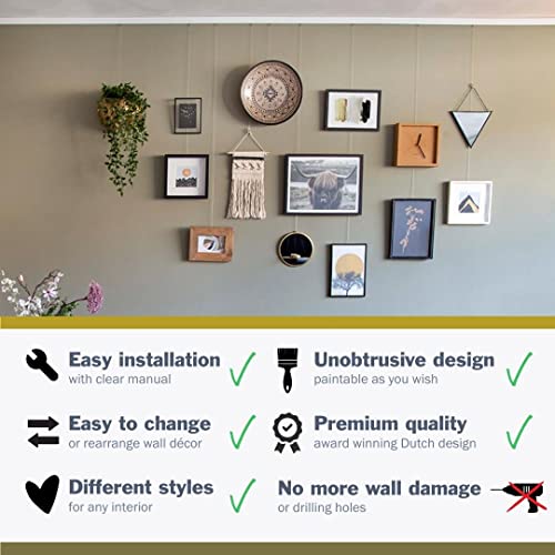 Una volta installato il sistema di sospensione per quadri, è possibile organizzare e riorganizzare all'infinito la tua decorazione murale senza dover usare degli attrezzi ne chiodi.