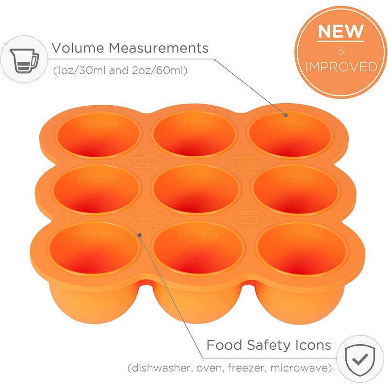 SICURO AL 100% PER IL BAMBINO - Il contenitore per alimenti per bambini è realizzato in silicone alimentare di alta qualità approvato dalla FDA, che è naturalmente resistente ai batteri e privo di BPA, ftalati e tossine. Il silicone non si macchia, non si graffia o si graffia nel tempo come i barattoli di plastica ed è sicuro per l'uso in congelatore, forno (230°C), microonde e lavabile in lavastoviglie. FACILE DA RIMUOVERE BORSA - 9 porzioni da 75 ml significa che è della dimensione perfetta per il tuo bambino in crescita. Riempi le borse finché non sono piene per metà all'inizio e piene man mano che il tuo bambino cresce. La forma grande e rotonda di ogni borsa laterale e la solida base del vassoio dispensa ogni porzione con il minimo sforzo - niente più distorsioni e dita doloranti! DESIGN UNICO CON CLIP E COPERCHIO - Il coperchio è in silicone (non in plastica come la maggior parte dei vassoi del congelatore coperchi) significa che non è solo più sicuro, è anche morbido e