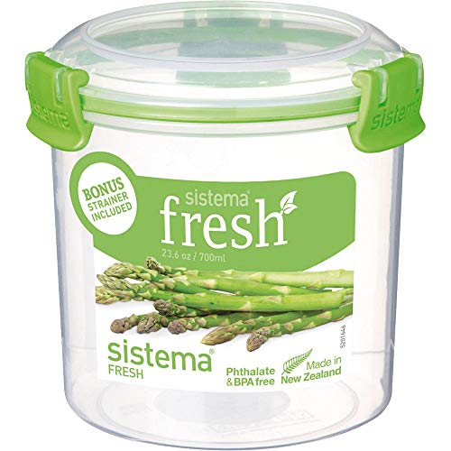 Sistema Contenitore di stoccaggio 700ml con colino in Trasparente/Verde, 11.5 x 11.5 x 11.4 cm