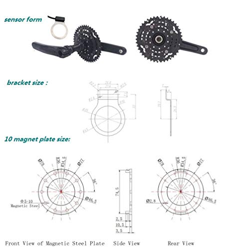 Sistema di conversione pedale BZ-10C PAS per bicicletta elettrica Sensore 10 magneti per guarnitura Hollowtech Guarnitura Kit di conversione ebike (Waterproof Connector)