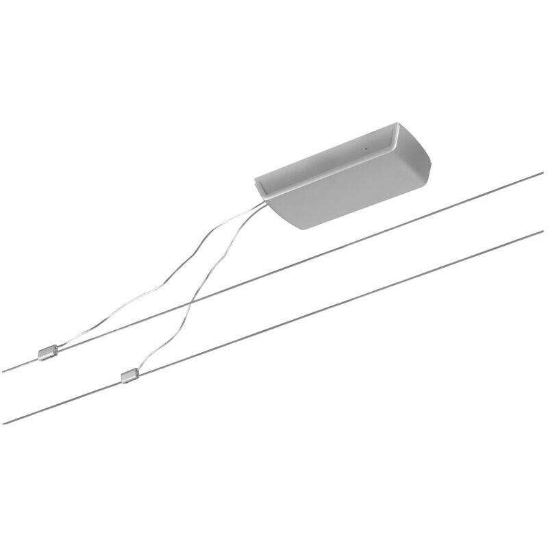 Sistema di corda Set di sistema - Chrome Matt Max. 40W senza lampadine DC Il risolutore del problema per condizioni di installazione difficili Il set di base in Chrome Matt può essere montato sia sul muro che sul soffitto e offre quindi possibilità di progettazione senza limiti. Sia che i sistemi dritti, diagonalmente o avenne - corde si adattano in ogni stanza e sono i solver problematici per condizioni di installazione difficili. Il bassista può essere integrato individualmente da singoli punti, deflettori e altri accessori. La corda con una lunghezza di 10 m può essere suddivisa in centro, in modo che il sistema possa essere chiuso a max. 5 m può essere allungato. Con questo sistema, è possibile realizzare una distribuzione ottimale della luce, con un crescente requisito di illuminazione, può essere facilmente ampliato. Per la distribuzione di apparecchi di illuminazione in tutta la stanza, è necessaria una sola presa elettrica. I sistemi con la tecnologia 12V DC (tensione DC) non