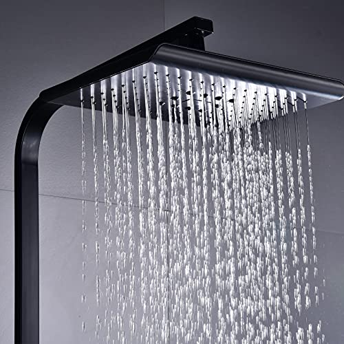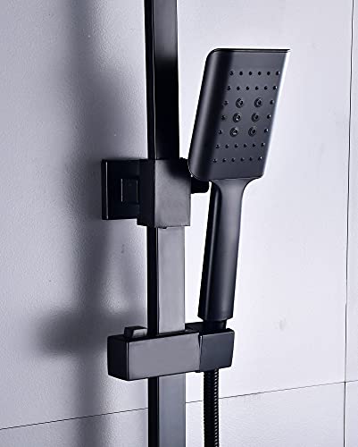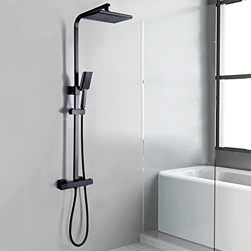Sistema doccia con termostato, set doccia quadrato, soffione a pioggia, doccetta, in acciaio inox, set doccia, set doccia, rubinetto per doccia, rubinetto per doccia, miscelatore nero, 90-110 cm
